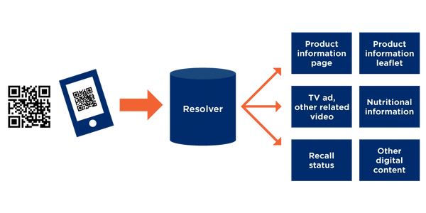 For example, a resolver could link the GTIN stored within a URI to show traceability, nutritional or sustainability information about a food or drink product. For hardware, it could link to things like instruction manuals or how-to videos. At the same time, the resolver can link an identified item to information for business partners such as recall status APIs, master data, hazardous handling instructions and more.